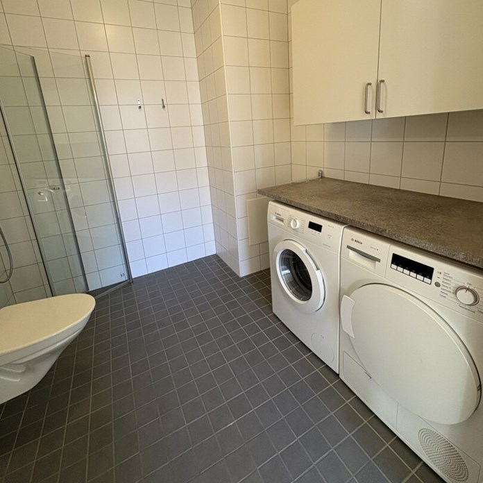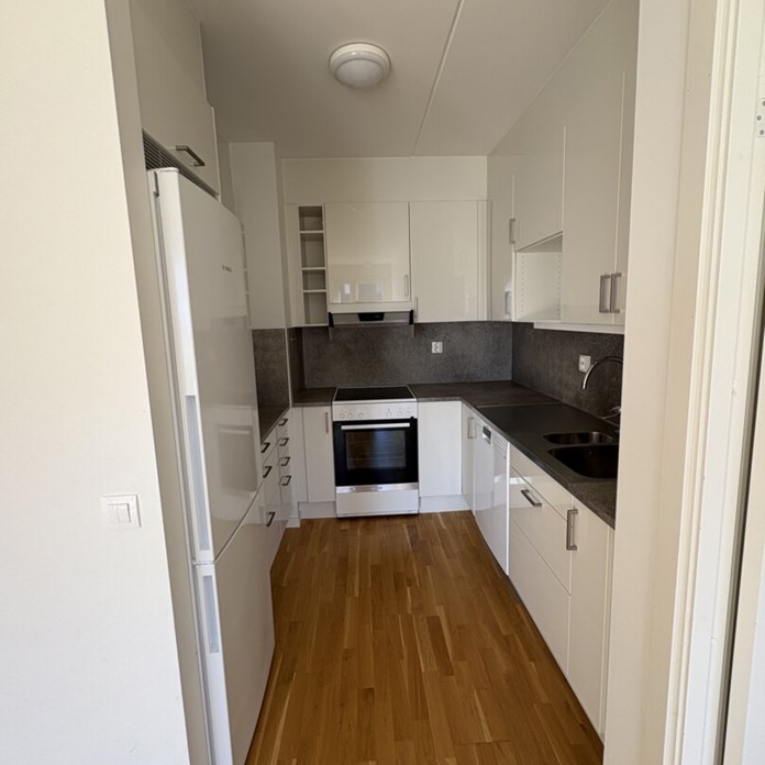 Köken är utrustade med vita skåpluckor i högglans, bänkskivor klädda med laminat av typ svart sten, samt diskbänk helt i rostfritt. I köket hittar du också utrustning för källsortering med 4 fraktioner, och plats för mikro i ett av överskåpen. Alla lägenheter har rymliga balkonger mot innergården eller uteplatser på entréplan.