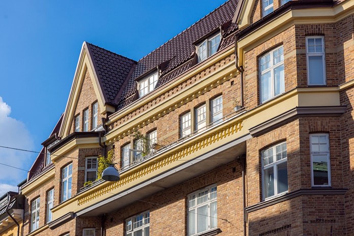 Fastigheten har lång historia och byggdes redan på tidigt 1900-tal. Huset har sin charm kvar i trapphus och lägenheter. Entréerna till trapphusen har marmorklädda väggar och trapphusen har stentrappor med räcken i smide, fina målningar och blyinfattade fönster. Lägenheternas burspråk, höga fönster och stukatur i taket vittnar om historian som finns kvar i fastigheten.